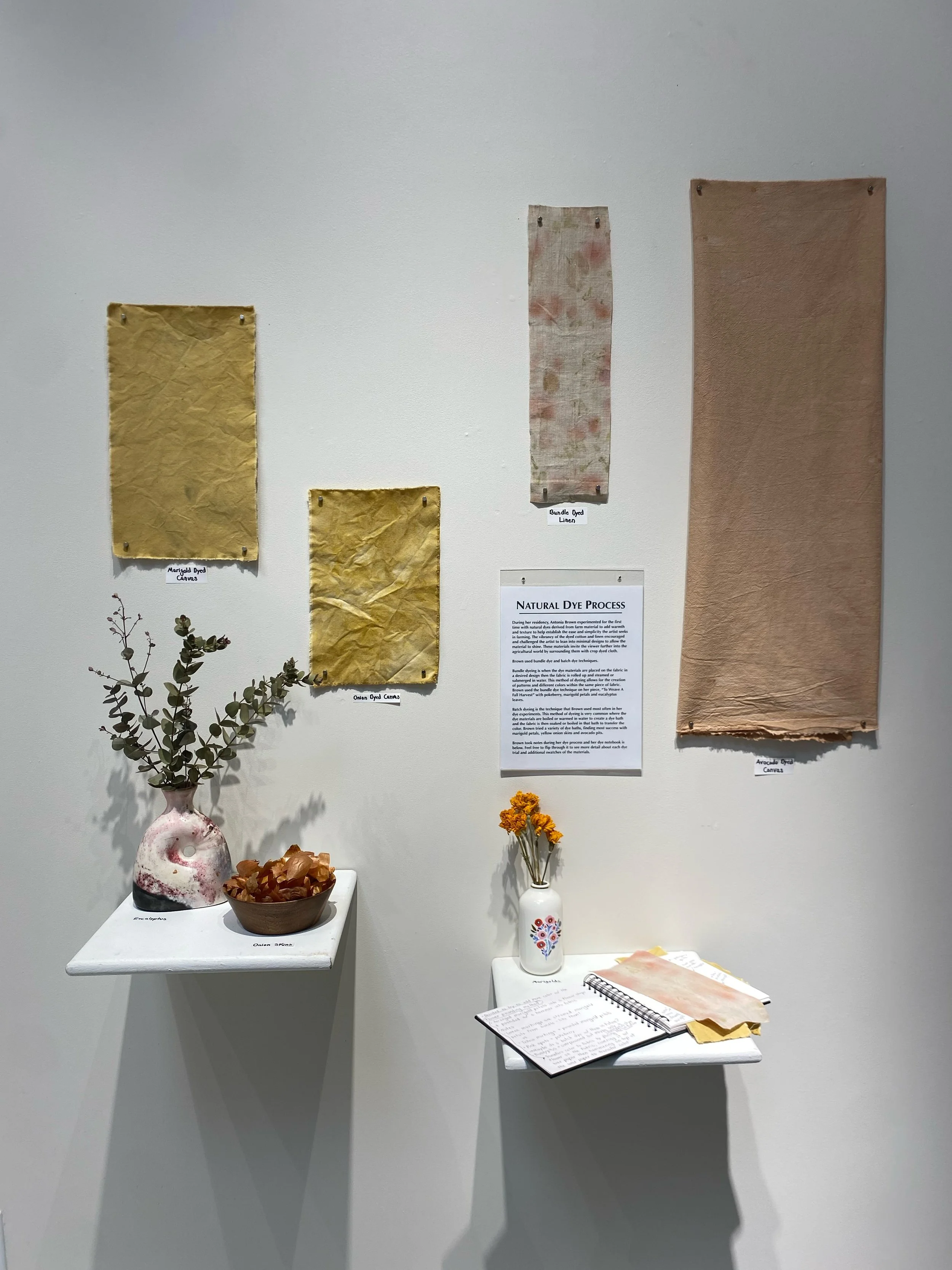 “Remember, I’m With The Cosmos” features paintings and naturally dyed fabric depicting farmscapes that Antonia Brown created during her six month Artist in Residence with the Durham Art Guild.