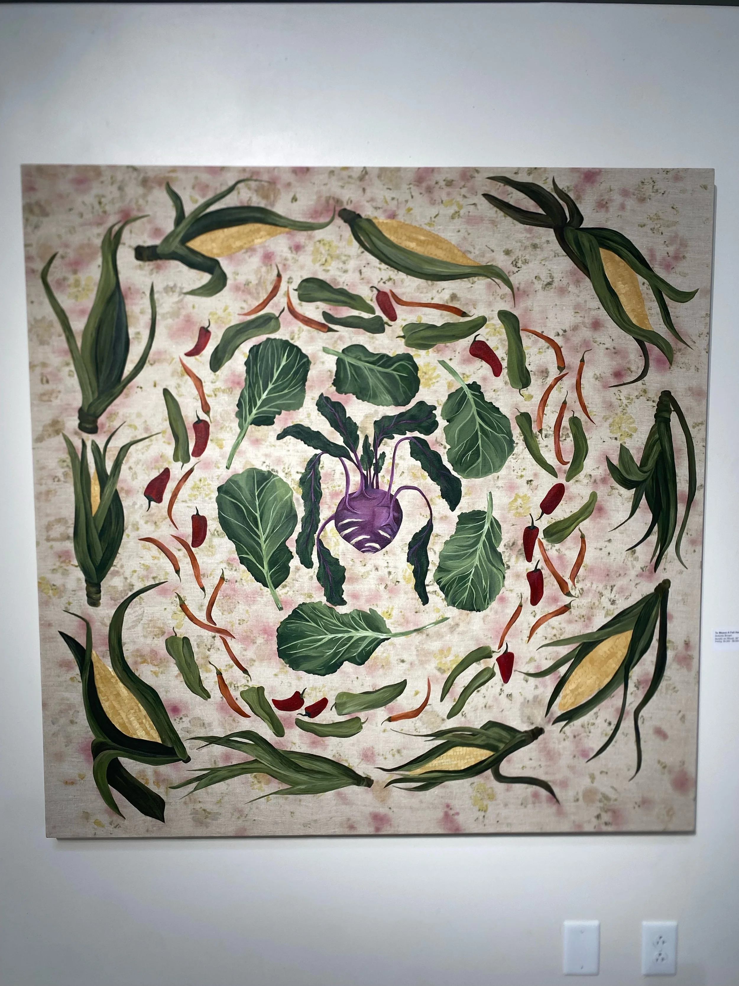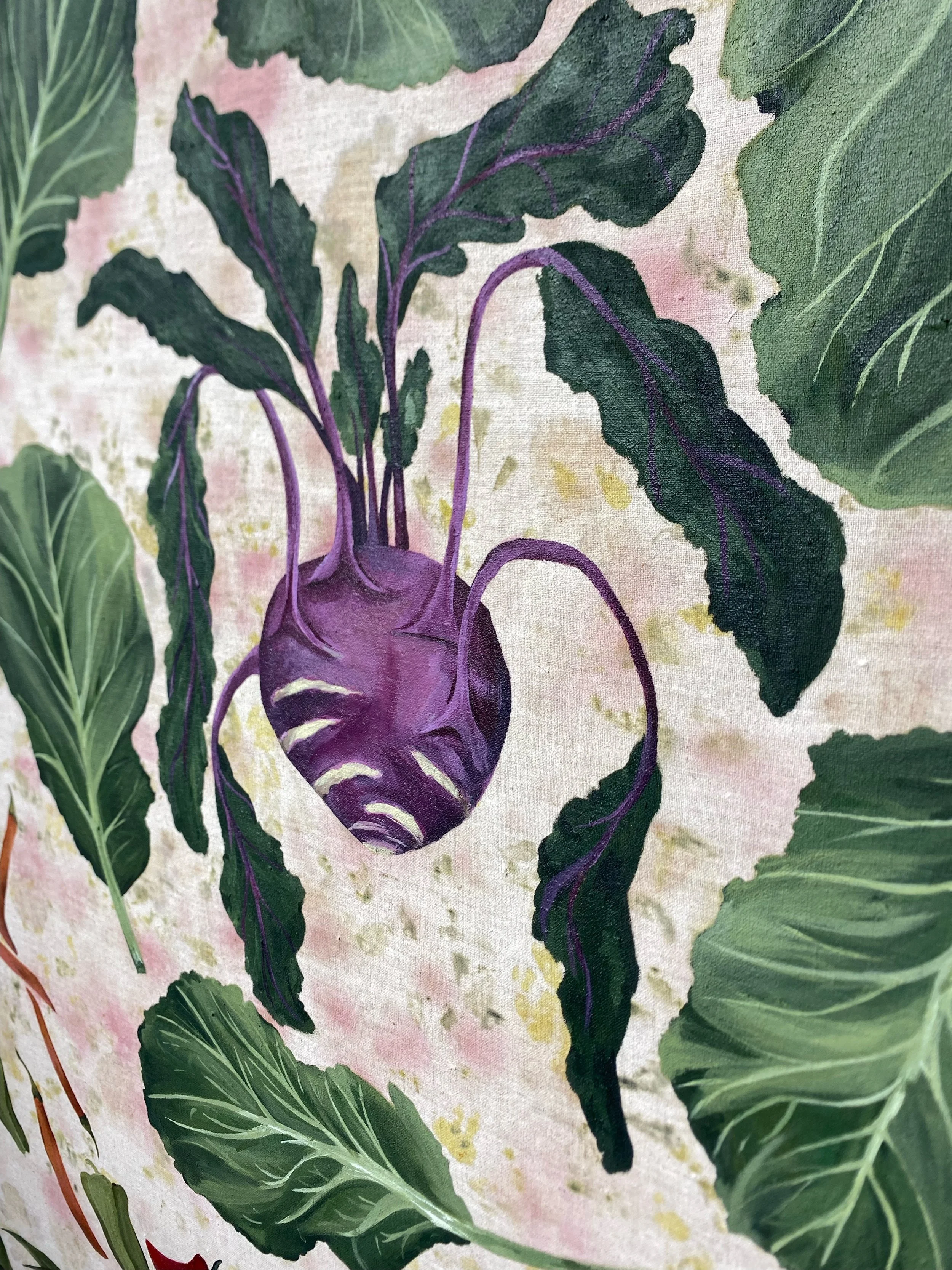 In these pieces, the artist grapples with her connection to agriculture and continues, uninhibitedly, to choose the path of tenderness, community and reverence. Her focus lies in the little moments of breath, beauty and serenity she holds tight to while farming.