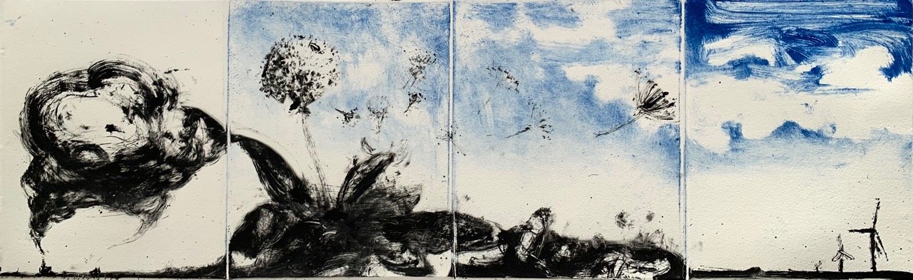 Artistic reflections on news and observations about Climate Change, expressed in colored and black & white monotypes.