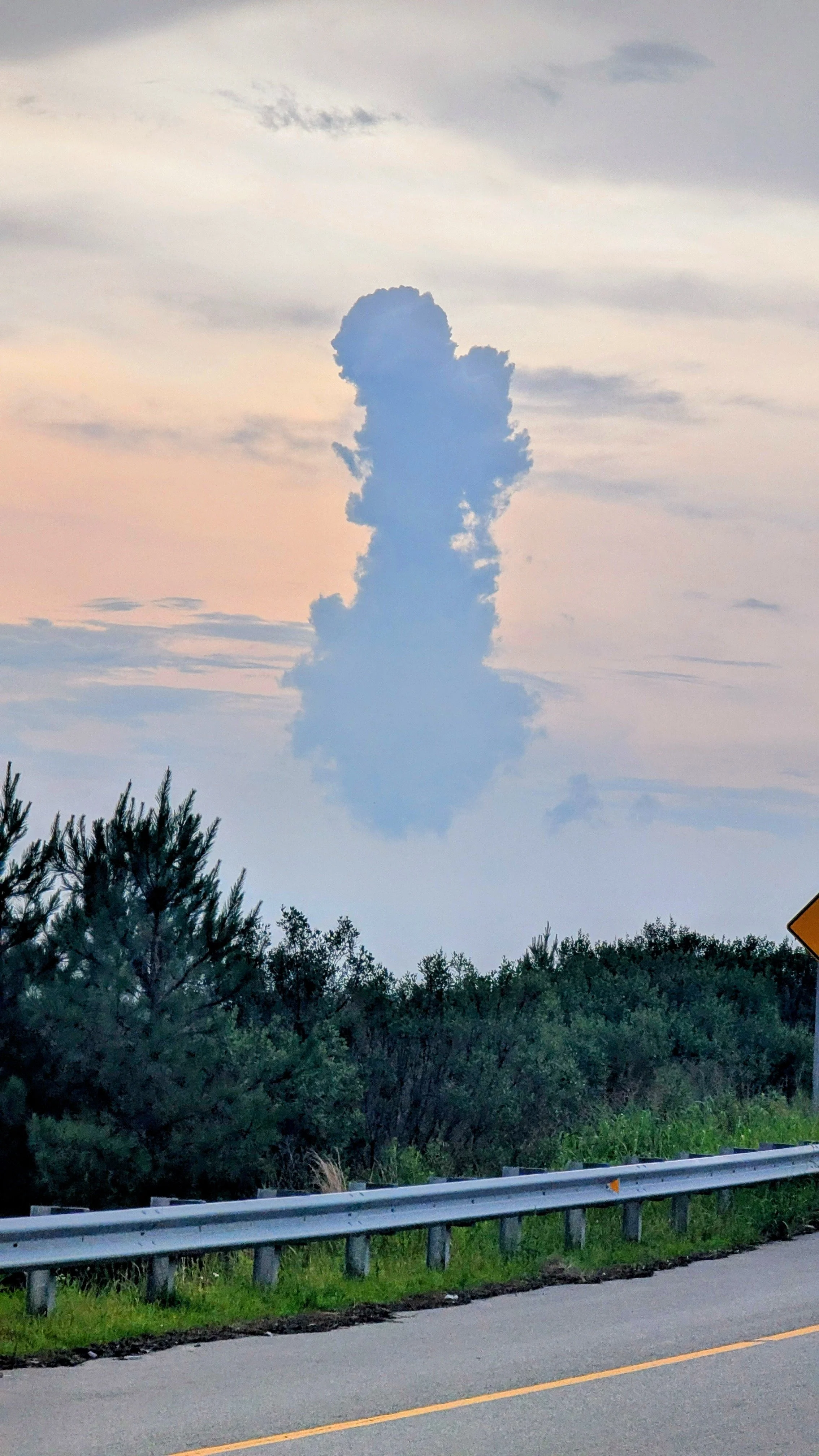 I took this photograph while I was on the road doing errands and I spotted this cloud. It caught my eye because it wasn't moving in the sky. I pulled over to take a picture of it because it struck me. I didn't want to alter it at all because I wanted the beauty of nature to show untouched. To me, I see an angel wihtin this shape, but even more specifically an angel child, kneeling, saying ""I see this world"". It was an inspriational moment to me that I wanted to share in this show so that veterans can see it and hopefully become insipired by it. "