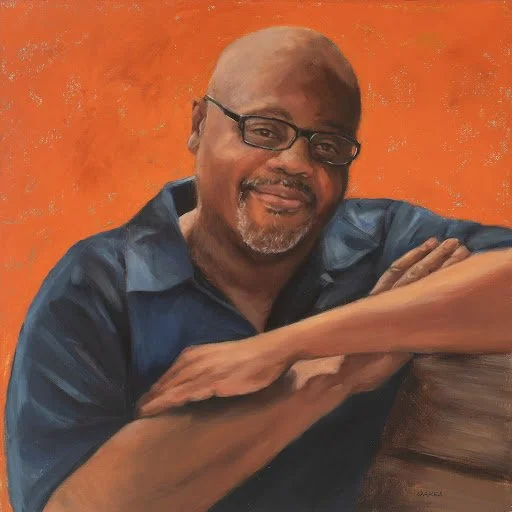 Lawrence seemed a bit skeptical at first to meet with me. He wasn’t sure why I would want to paint his portrait. I explained my mission to paint people who exited homelessness to highlight the stories that often go untold. He seemed to relax and told me his story. Lawrence grew up in Chapel Hill, attending Grady Brown Elementary, Phillips Middle School, Orange High School, and moved to graduate from East Chapel Hill High. He played basketball and football. As a teenager he worked at Carroll Woods. After some time of struggling to find his way, eventually becoming homeless, he worked as a “food runner” at Top of The Hill restaurant and secured an apartment near his work. He hopes to move up to be a waiter.