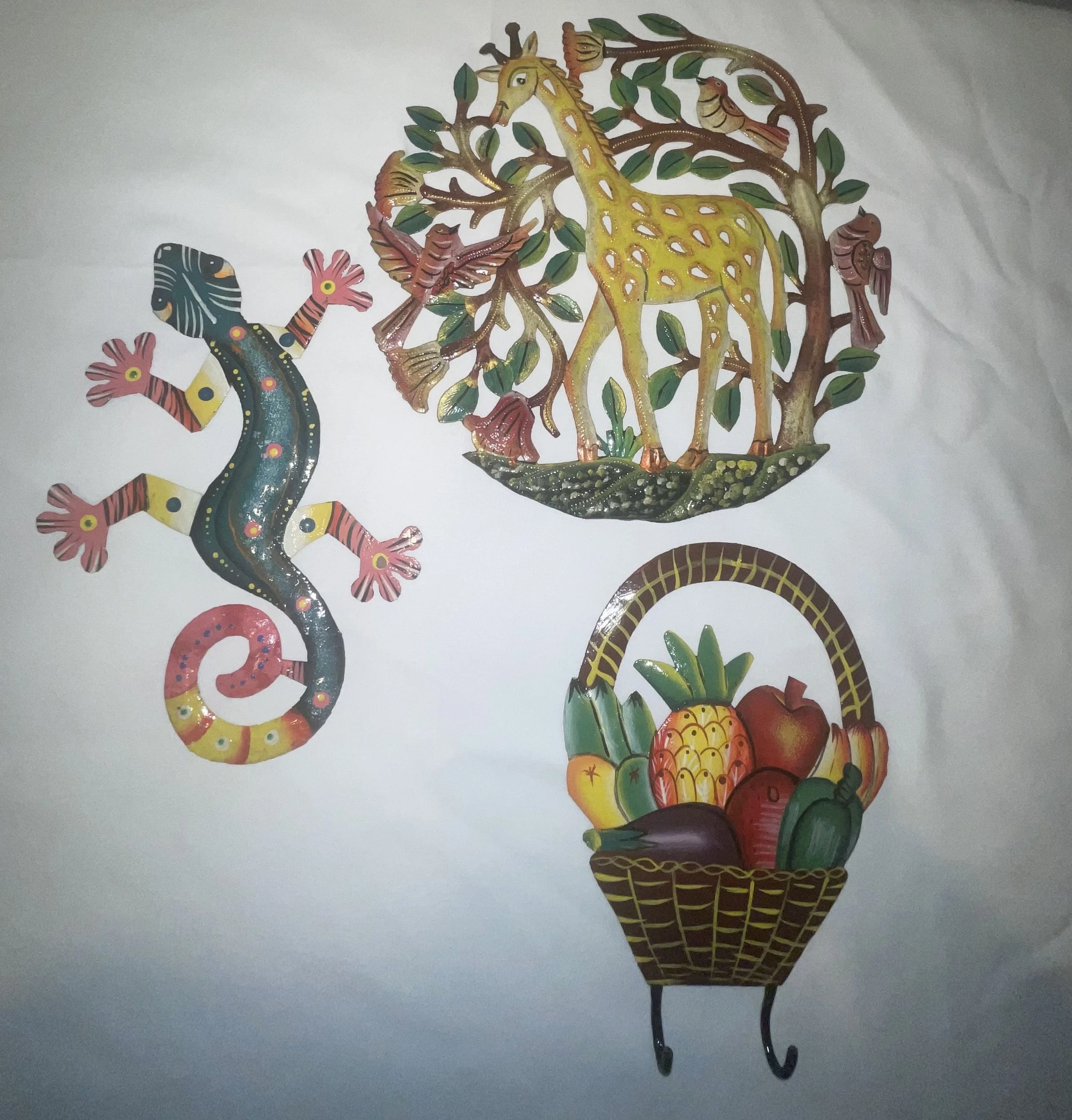 Original paintings, prints, note cards, scarves, tote bag, painted wooden crafts.